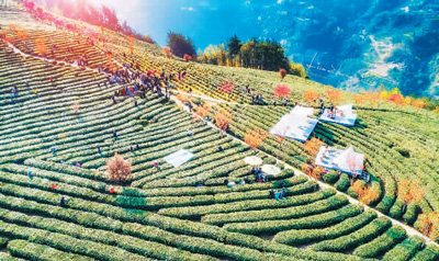 “三月里来采茶忙,唱起山歌动四方。”陕西紫阳的好春光会聚在葱绿的茶山上,萦绕在采茶姑娘欢快的采摘节奏中,洋溢在“丰收茶园披彩霞”的图画中。