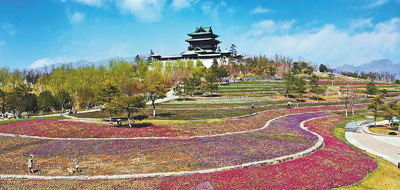 图为4月13日,工人正在永宁阁下进行绿化景观恢复。本报记者 贺勇 摄