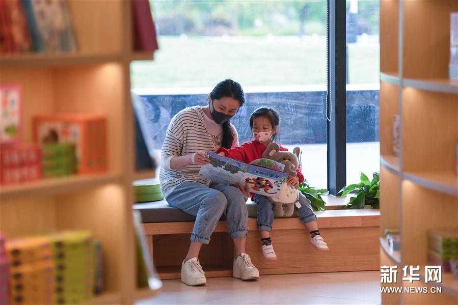 4月23日,一对母女在奉化书城阅读儿童绘本。新华社记者 黄宗治 摄
