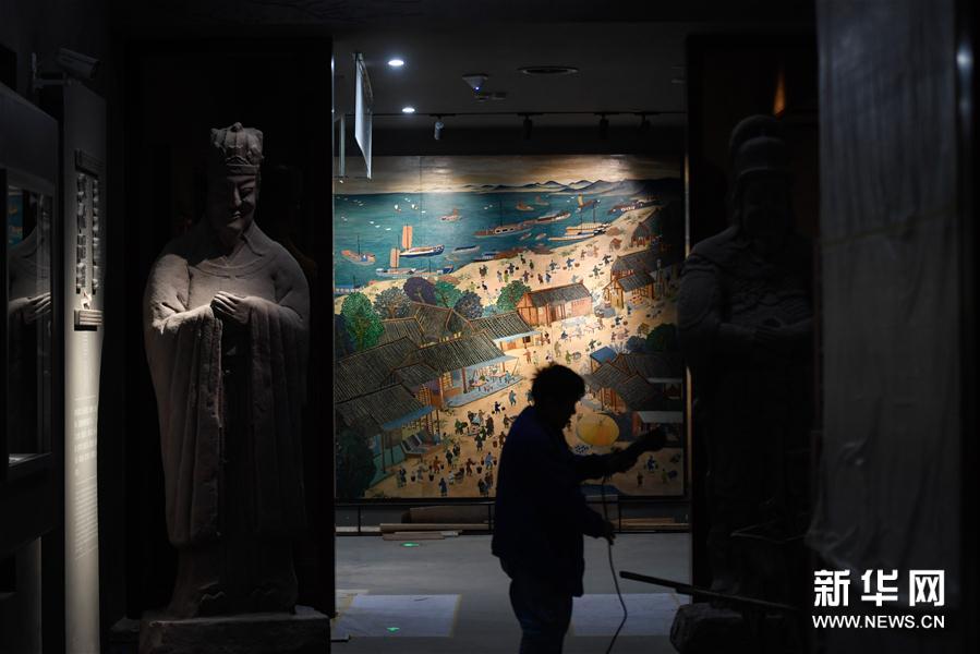 4月23日,工作人员在奉化博物馆布置展区。奉化博物馆建筑主体由原奉化热电厂发电车间改造扩建而成,展厅面积约6000平方米,将择期开放。新华社记者 黄宗治 摄