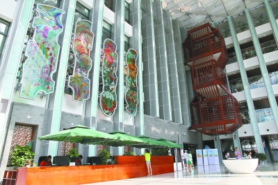 首都图书馆引航厅5月1日静候读者到来。