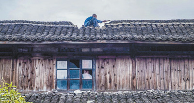 修葺屋顶。陈月明 摄(人民视觉)