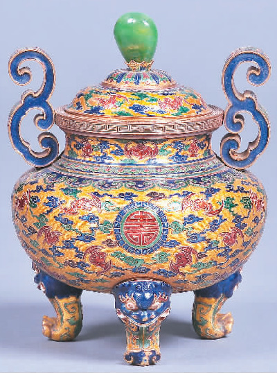 清乾隆錾胎珐琅金鼎。图片由广州博物馆提供
