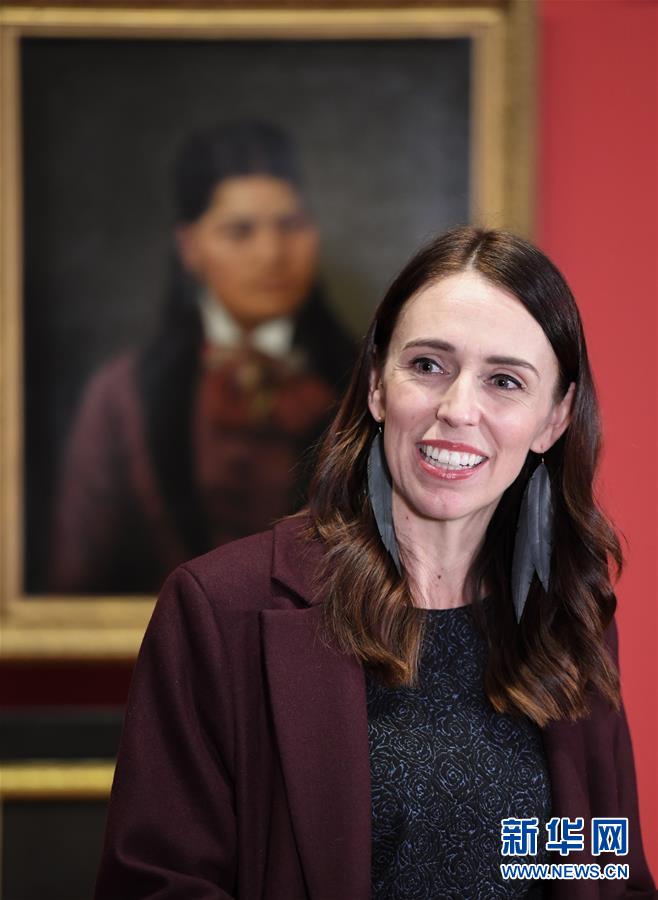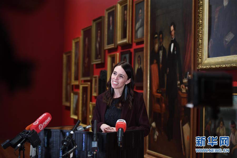 5月28日,新西兰总理杰辛达·阿德恩在位于首都惠灵顿的国家博物馆艺术厅举行的新闻发布会上讲话。 新华社记者 郭磊 摄