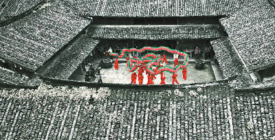 顺溪村村民在陈氏祖屋里舞龙。王爱莲 摄