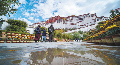 6月3日,在严格落实新冠肺炎疫情防控措施的前提下,西藏布达拉宫有序恢复对外开放。开放期间实行预约、分时、限流参观,每日预约参观人数限额2100人。据了解,游客进入景区游览将严格执行“一进一测、实名登记”制度,不仅需佩戴好口罩,还需出示本人电子票、二代居民身份证和健康码。(鲜敢 何蓬磊)