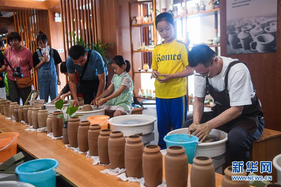 6月6日,游客在瓶窑老街的“瓶窑陶艺馆”内体验陶艺制作。新华社 记者 徐昱 摄