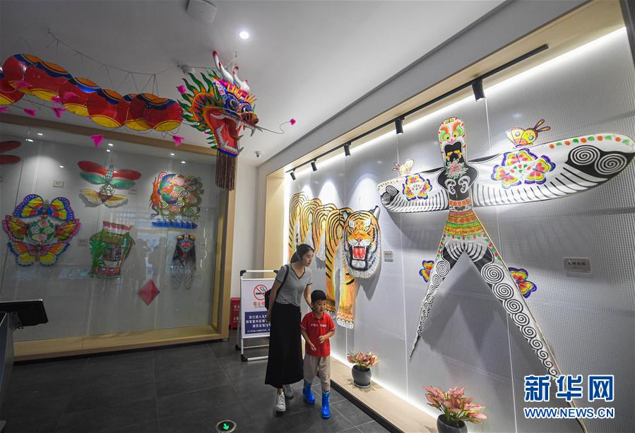 6月6日,游客在瓶窑老街内参观“风筝灯彩馆”。 新华社 记者 徐昱 摄