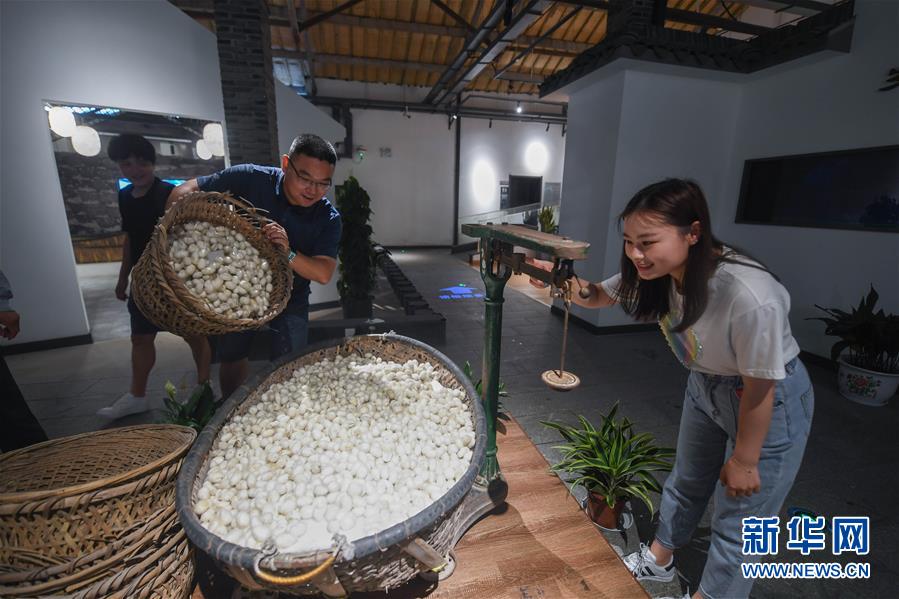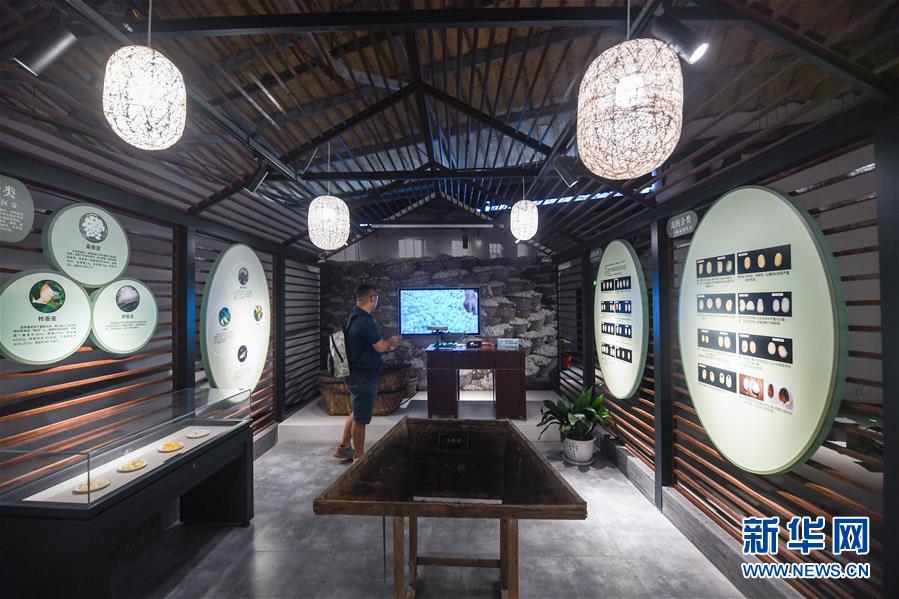 6月6日,游客在瓶窑老街的“蚕桑文化馆”内感受传统蚕桑文化。新华社 记者 徐昱 摄