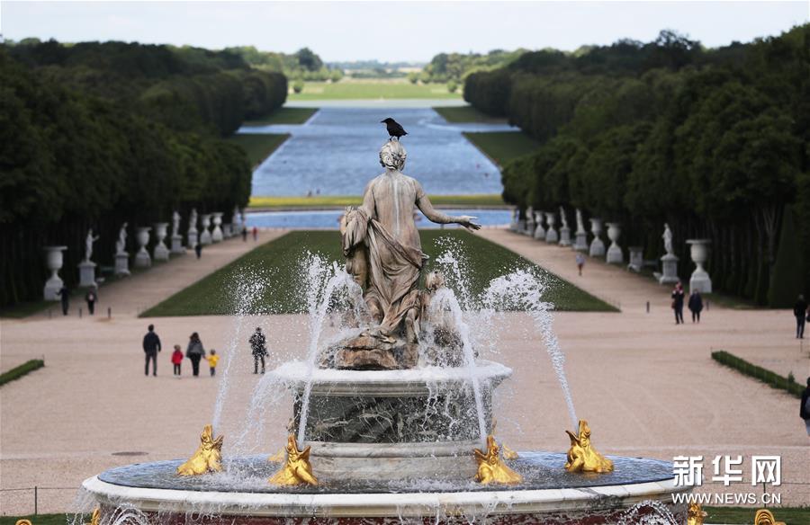 6月6日,游客在法国巴黎近郊的凡尔赛宫花园内参观游览。新华社 记者 高静 摄