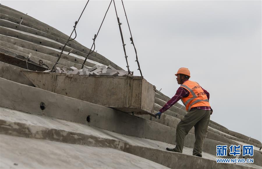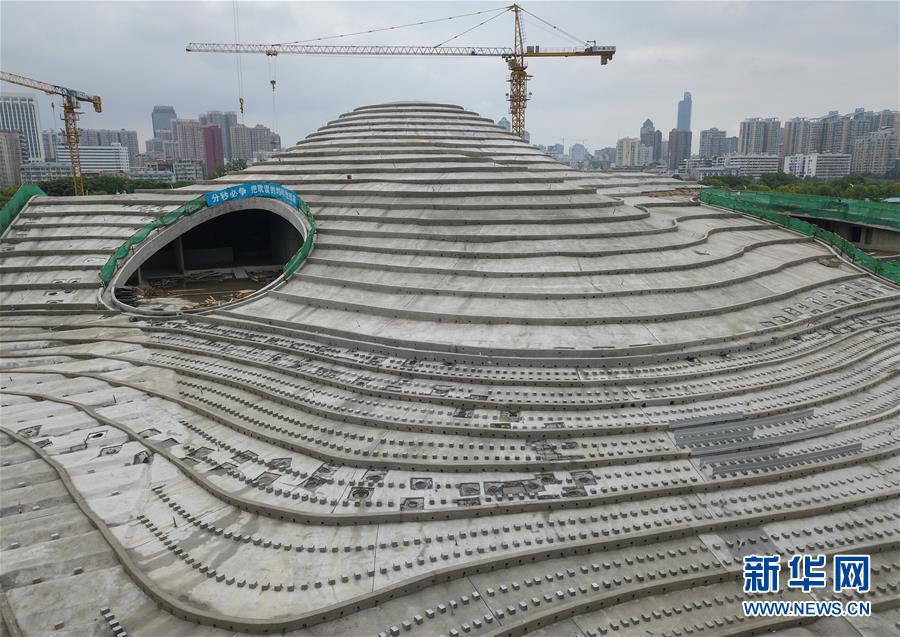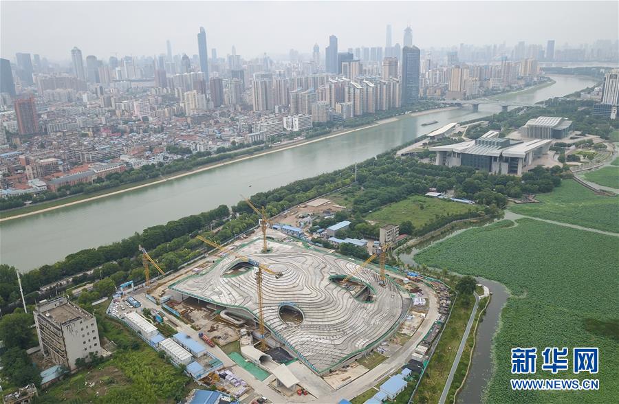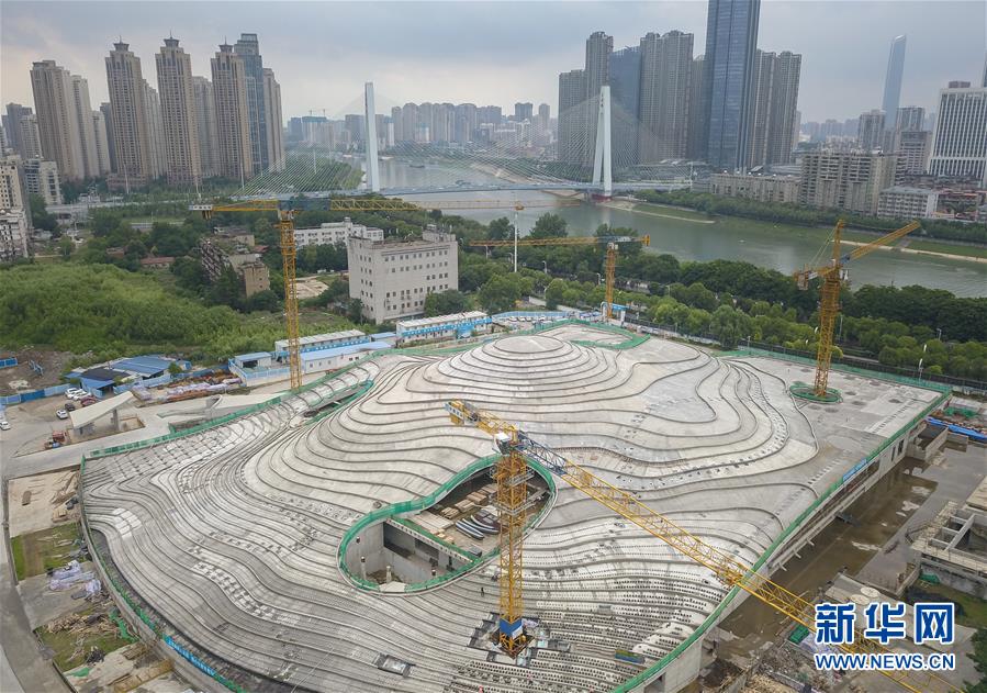 6月10日,工人在湖北武汉琴台美术馆工地施工。新华社 记者 程敏 摄