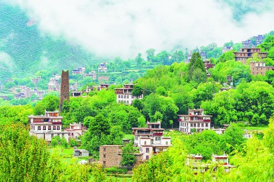 四川省甘孜州丹巴县地处川西北文化旅游经济带和藏羌彝文化走廊核心区。有“中国最美景观村落”之称的中路藏寨,一幢幢藏式楼房散落在山坡上,美不胜收。光明日报 记者 闫汇芳 摄