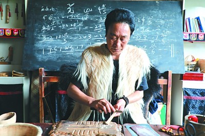 四川省阿坝州茂县非遗传习所,国家级非遗传承人何玉金现场演示制作羌笛。光明日报 记者 常莹 摄