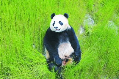 四川省阿坝州九寨沟县甲勿海熊猫园,熊猫新新憨态可掬。光明日报 记者 常莹 摄