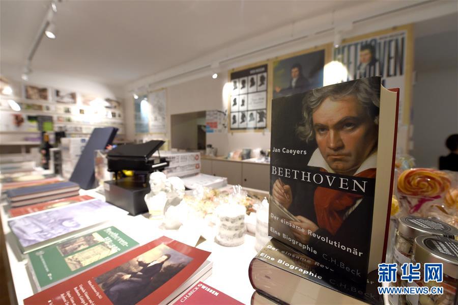 7月2日,奥地利维也纳的贝多芬博物馆纪念品商店展示关于贝多芬的书籍。新华社 记者 郭晨 摄