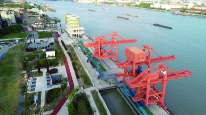 杨树浦发电厂遗迹公园鸟瞰图。首席记者 刘歆 摄