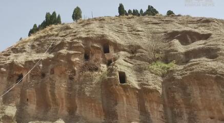 悬崖绝壁之上,密密麻麻地分布着数个长方形洞口,这就是被当地人称为“巴人洞”的崖墓。