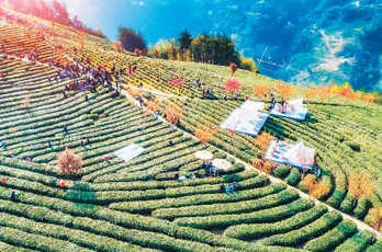 陕西紫阳的好春光会聚在葱绿的茶山上,萦绕在采茶姑娘欢快的采摘节奏中,洋溢在“丰收茶园披彩霞”的图画中。“名茶之乡”紫阳县春茶采摘季开始了,茶山上,采茶姑娘戴着头巾,穿着整洁的衣裳,腰挎着竹篓,熟练地采摘着碧绿的茶叶。