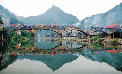 从繁华的鳌江下游出发,一路向西而行。窗外,山林愈加茂密,人烟愈加稀少。驱车一个多小时,眼前忽见一个村落。一条溪流穿村而过,溪北岸,高矮不一的民居簇拥着一片青砖黛瓦的古建筑群,蔚为壮观。