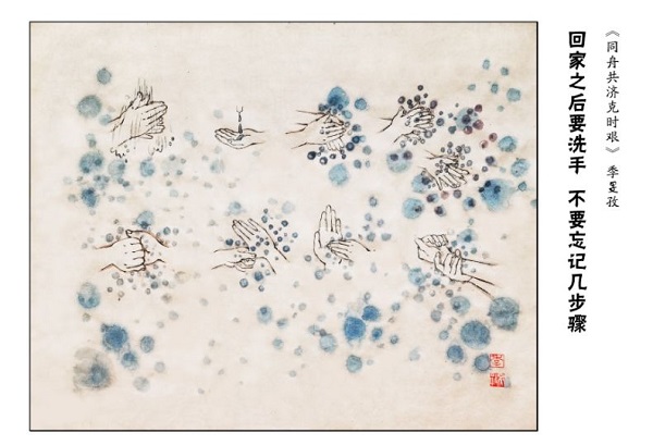 “疫情发生后,我一直在想我能做些什么?最后构思用老百姓最熟悉的方式来传播防疫知识。”季旻孜说,此组《同舟共济克时艰》“抗疫”宣传画,用中国画的表达手法、连环画的形式呈现了自我防控的要点,并且还根据网络内容重新编了一套顺口溜以配合画作,目的就是用自己的专长帮助更多的百姓知道怎么防疫,打赢这场战“疫”。