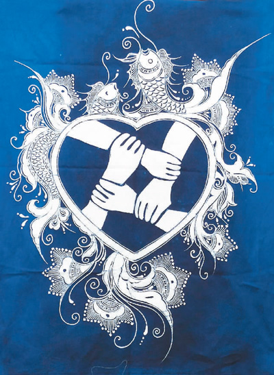 杨婷婷蜡染画《众志成城,抗击疫情》。图片由作者提供