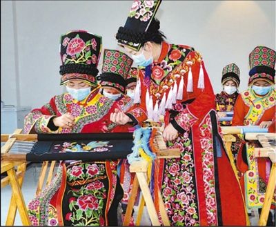 3月1日,陕西省汉中市宁强县,复工的绣娘在赶制羌绣产品。宁强羌绣是陕西省非物质文化遗产,近年来,宁强县推行“公司+学校+基地+合作社+绣娘”产业助贫模式,组建羌绣传习基地10个,培训绣娘5000余人次,进一步传承了羌文化。