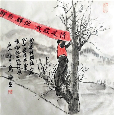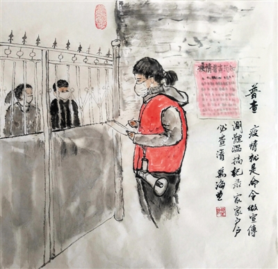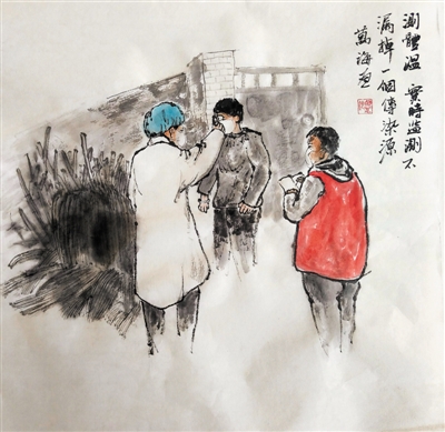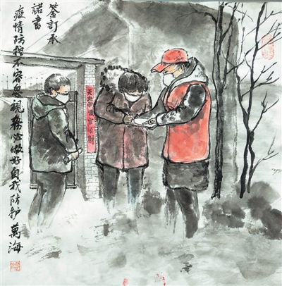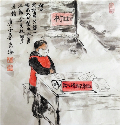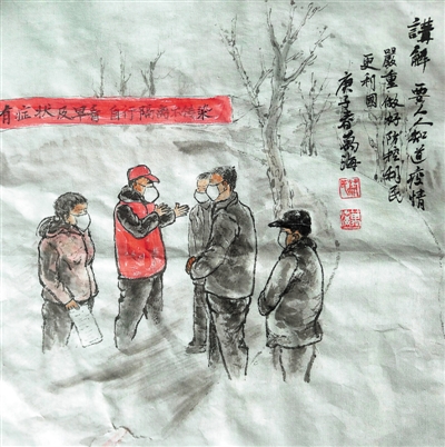 “为了群众的安危,很多人不分昼夜坚守在各个乡村路口回不了家。”蒯万海说,这些都让深受感动,决定用手中的画笔记录这些真实的故事。