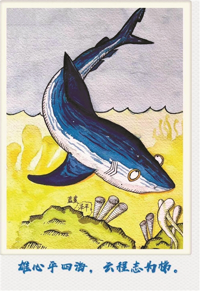 从2月18日开始,第一幅画的是岩羚羊,送给班上的高欣云同学,画作下还写着一行标着拼音的字:“头羊勉励前,携手齐争先”;第二天画的是灰冠鹤,送给张煜之同学,下写“韶颜秀眸曼妙,皓齿出言有章”;第三天画的是两条深海鱼,下写“鸾凤并蒂生,性擅各自持,海阔凭鱼跃,天高任鸟飞”,这是送给龙凤胎姐弟张梓涵和封瑞涵。
