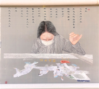 “史记:己亥末庚子春,荆楚大疫染者数万,众惶恐,举国防,皆闭户,道无车舟,万巷空寂。然玉汝于成,风雨而立,医无私警无畏,能者竭力,万民同心,月余疫除,终胜。”作品上的一番题词,将眼前的这场伟大战疫擢升为了历史。