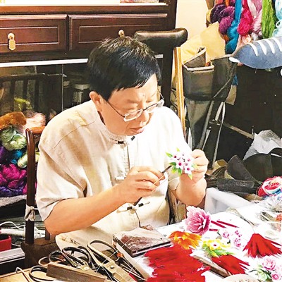 赵树宪制作绒花。(配图由受访者提供)