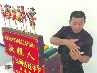 因为有了非遗传承人的身份,张明铁坦言,他觉得自己也肩负了一份责任。除了把手艺教给儿子、儿媳,他还办了妆糕人兴趣培训班。“目前我的学生已经遍布泉州各地。有学生在我的指导下,获得了相关技能比赛的一等奖。”