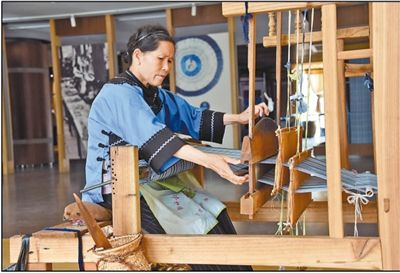 图为布依族老人在织布。人民日报 记者 苏滨 摄