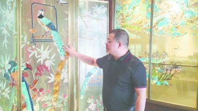 从源远流长的中华文化中汲取养分,是赵献及团队不停创新发展的原动力。“彩绘玻璃比较平面,色彩较为单一。我们一直在推陈出新,从景泰蓝的掐丝工艺中得到启发,经过研究转化为可以在玻璃上实现的立线工艺,营造出立体的效果。另外,我们也潜心研究传统家具中的螺钿工艺,并将其运用到彩绘玻璃的制作上。”赵献说。