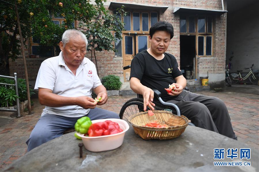 7月22日,王红彬(右)和父亲在自家院里择菜。新华社 记者 朱旭东 摄
