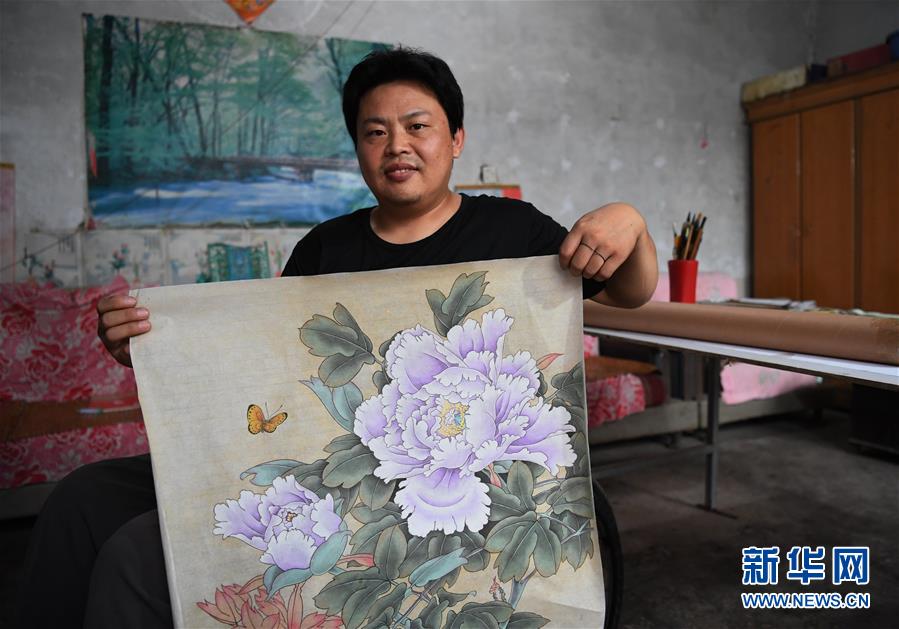 7月22日,王红彬在家中创作工笔画。新华社 记者 朱旭东 摄