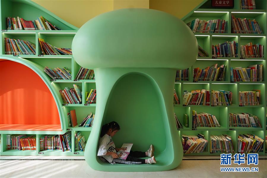 9月8日,一位小朋友在高新区图书馆儿童阅读区内阅读。新华社记者 周密 摄