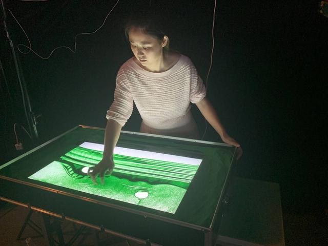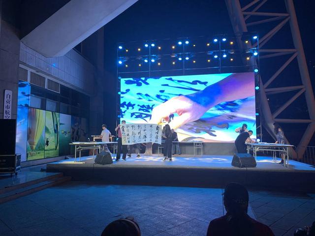 雅集活动充分体现了传统诗书画琴优雅特色。蒙蒙夜色下,活动在陈宏卿低沉男声带来的《春江花月夜》朗诵中拉开序幕。舞台背景大屏幕上,沙画艺人李晓瑛不断变幻画出的明月、山水、花鸟、旅人、大江,和“海上明月共潮生”构成一幅视觉和听觉的美景。罗宇的苏东坡长歌《中秋见月和子由》朗诵,激起文艺家们深深的共鸣。