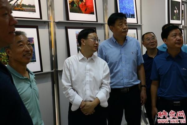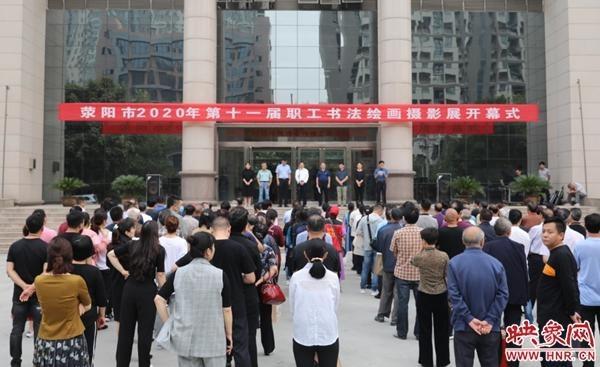 在荥阳市委常委、组织部部长曾厚宏宣布“荥阳市第十一届职工书法绘画摄影展开幕”后,与会领导、嘉宾共同到市总工会二楼职工文化艺术馆参观了展览。