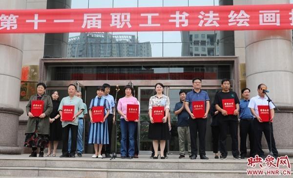 为鼓励广大职工艺术爱好者创作热情,促进全市职工书法绘画摄影艺术的蓬勃发展,主办单位授予荥阳市广武镇工会等8个单位“优秀组织单位”称号;经专家评审,授予任刚军等64人的作品分别获得书法、绘画、摄影一、二、三等奖和优秀作品奖。开幕式现场,荥阳市总工会副主席苏辉宣读了表彰决定,并对获奖代表颁发了荣誉证书。