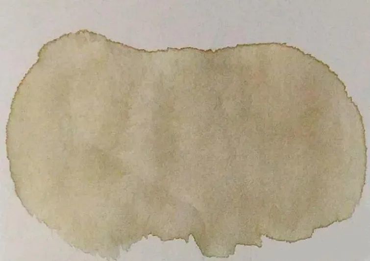 第一步:用藤黄加入朱磦,再加淡墨,调出较淡的色墨,用大笔侧锋运笔画绵羊的臀部。