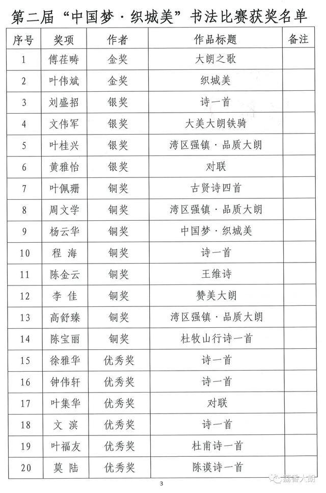 今天下午,镇党委书记陈福坤,镇党委委员刘瑜、李柱焜等镇领导出席了第二届“中国梦·织城美”大朗镇职工书法大赛颁奖仪式,并为获得本次书法大赛金、银、铜奖的作者颁发了荣誉证书。