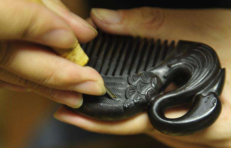“汉唐时期的梳子以大漆为主,到了宋代则以竹木为主,梳柄也从马蹄形逐渐发展为弧形。”说起梳子的历史,董良如数家珍。