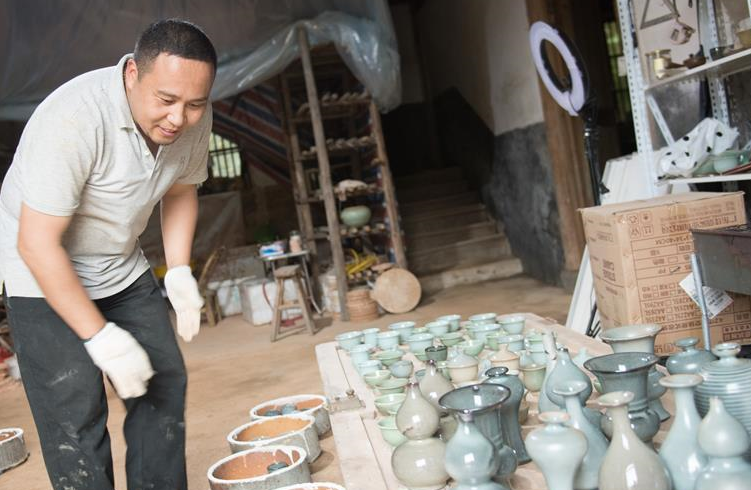 已入不惑之年的安徽人赵彬,因为对龙泉青瓷的痴迷,2016年跑进浙江龙泉上垟镇的山间,租用民房建起柴窑。自己挖紫金土练泥、找草木灰配釉、劈柴烧窑。几年间,他平均每个月烧一窑,并尝试上釉裸烧的方法,让柴灰自然地落上温润的釉面。