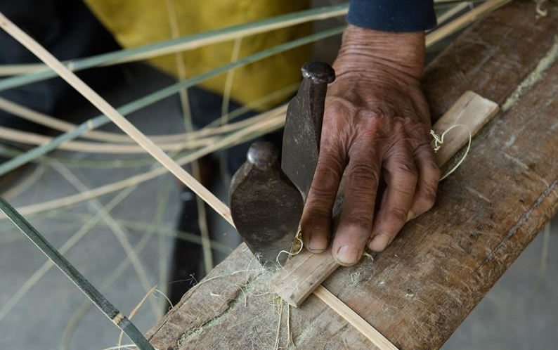 浙江诸暨东和乡龙溪村有一位102岁的老人蔡渭东,他从12岁开始拜师学艺,做了90年的篾匠,如今依然耳聪目明,每天坚持编织篾器。