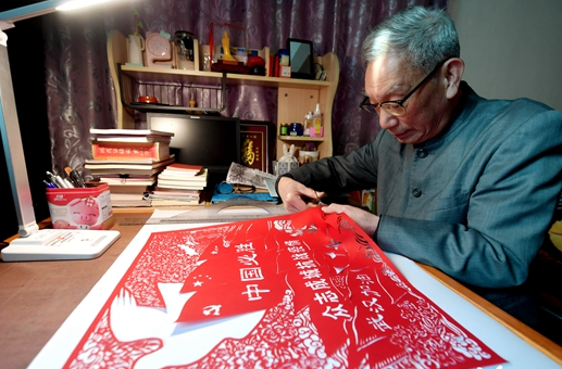 近日,在福州罗源县凤山镇一间普通民房里,满头银发的朱学舜一气呵成地完成了剪纸作品《抗击疫情》。朱学舜今年80岁,是罗源知名剪纸人,创作剪纸作品已超过60年,曾7次在全国大型剪纸艺术评奖活动中获金奖。