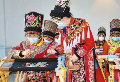 3月1日,陕西省汉中市宁强县,复工的绣娘在赶制羌绣产品。宁强羌绣是陕西省非物质文化遗产,近年来,宁强县推行“公司+学校+基地+合作社+绣娘”产业助贫模式,组建羌绣传习基地10个,培训绣娘5000余人次,进一步传承了羌文化。
