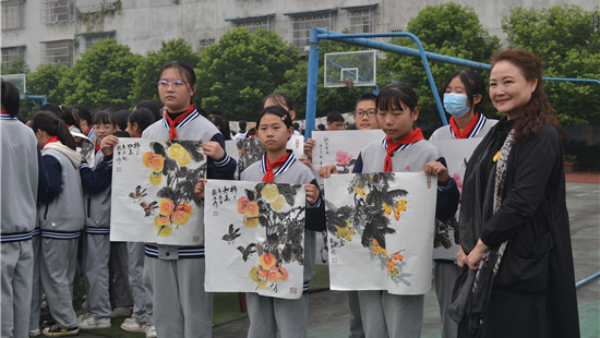 为促进青少年对中华传统文化的了解和热爱,增强继承和弘扬中华文化的自觉性活动仪式上,艺术家们向学校捐赠图书和书画作品;老研会艺术家还向部分学生赠送书画作品。学生们参观了现场展出的老研会书画作品
