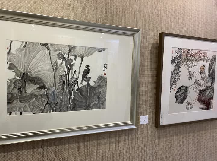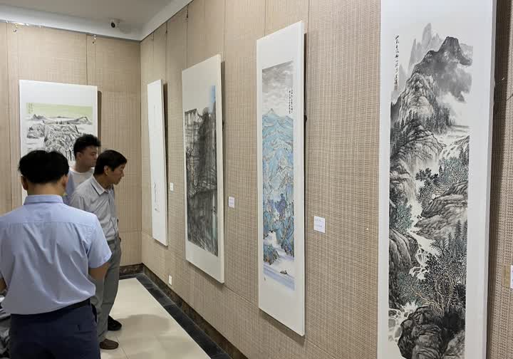 现场,当代书画名家邀请展同时开展,本次展览以本省当代书画名家作品为主体,共展出中国画作品与书法作品95件。此次展出的作品是书画名家一丝不苟、 创研探究心血的缩影,诠释了他们在各自从艺道路上独到领悟与不懈追求的精神。常州书画院画师李宾这次带来的作品是书法作品王湾诗《次北固山下》。