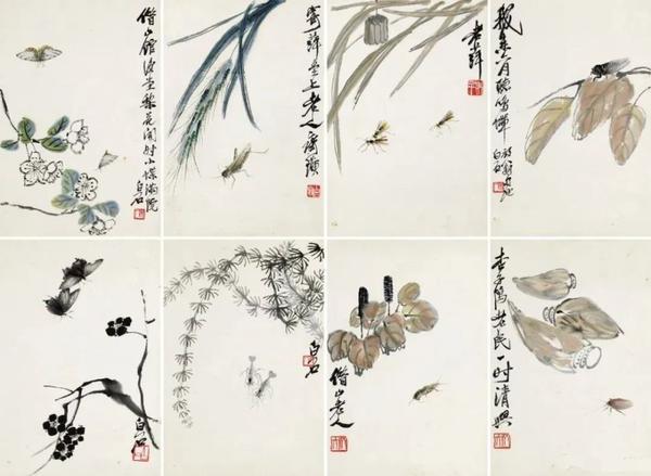 本专场的第二依然是来自于齐白石的作品,一组创作于绘画鼎盛期的《花卉工虫册》,工虫和写意花卉相结合的艺术表现,亦有文人画的清新雅致,最终是不负众望的3025万元成交。
