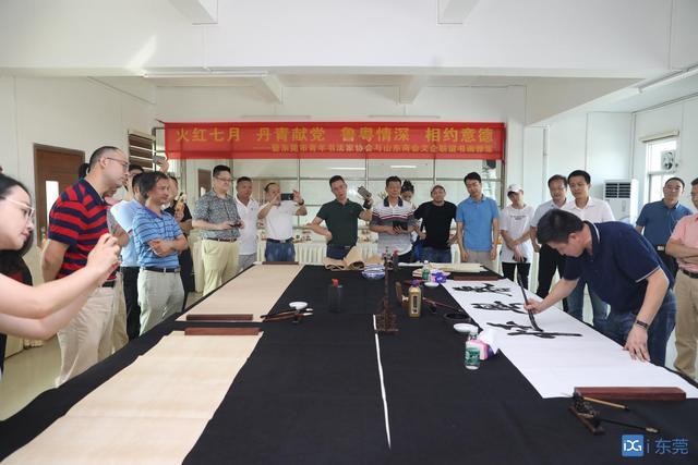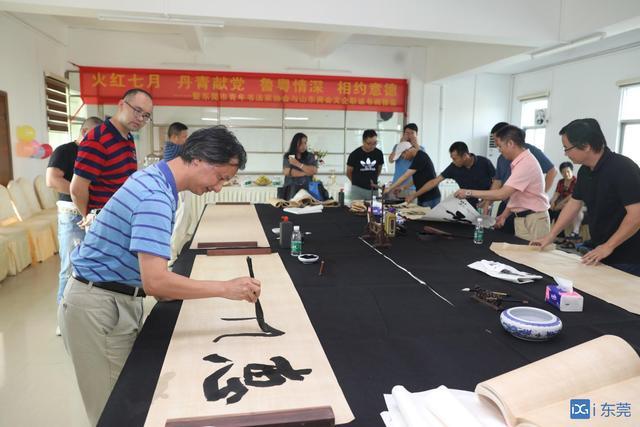 “大展宏图”、“厚德载物”、“惠风祥云”、“紫气东来”、“高瞻远瞩”、“马到成功”……7月11日下午,东莞市青年书法家协会携手东莞市山东商会举办文企联谊交流会。10多名青年书法家以笔为媒,吟诗作赋,挥毫泼墨,为企业送上良好祝愿,为企业家搭建沟通交流平台,共享资源,推动平安文化进企业。